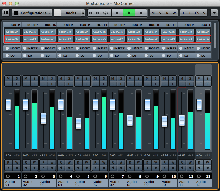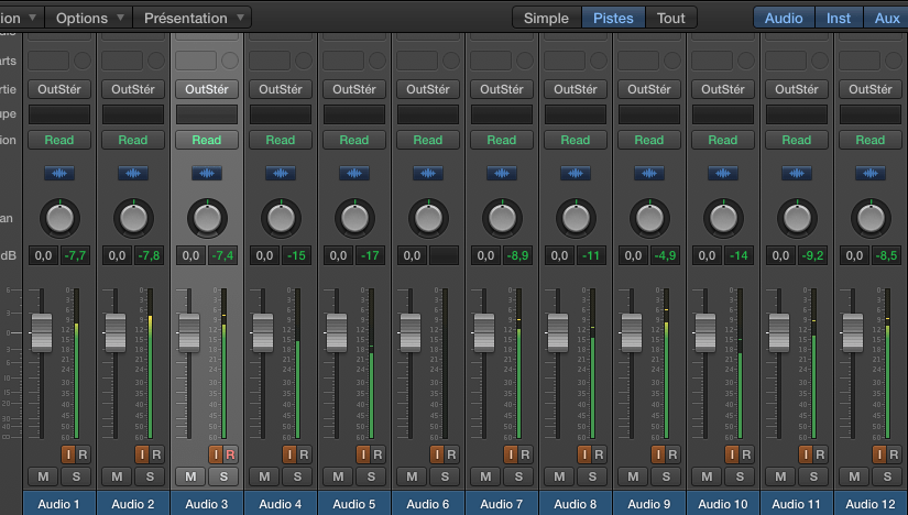 C’est sommaire mais tout y est pour faire ce qu’on veut ! Des entrées, une sortie stéréo, des pistes et des inserts.