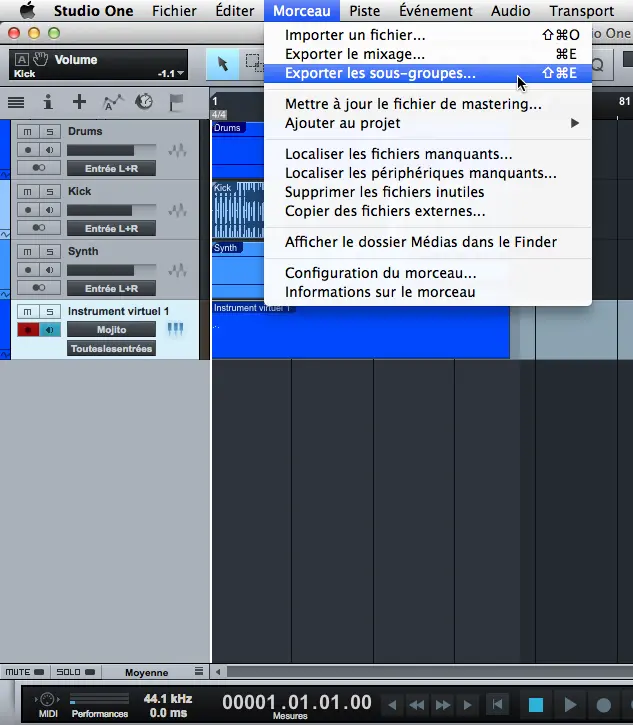 Puis allez dans le menu « Morceau » et « Exporter les sous-groupes … »