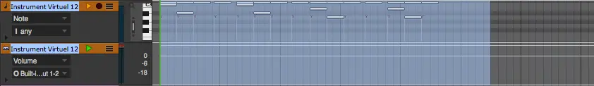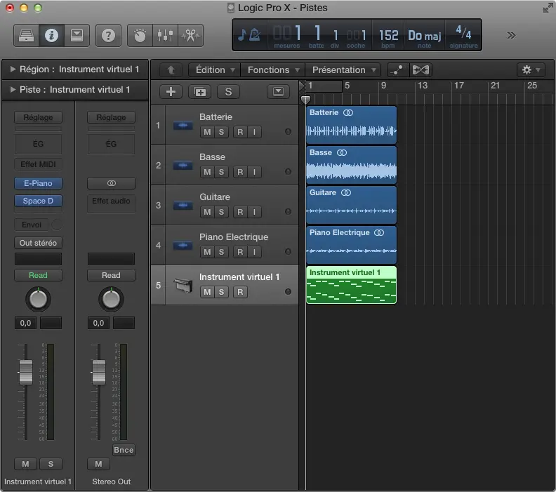 Chaque instrument est constitué d’une piste MIDI contenant les notes jouées et une piste instrument servant à charger l’instrument voulu. Vous devez sélectionnez les 2 sur la longueur du projet (+ quelques mesures) en partant de la mesure 1.