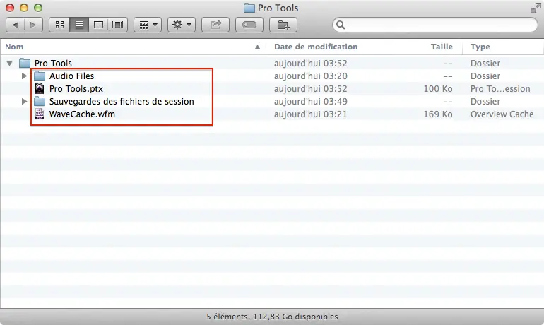 Maintenant, vous pouvez compresser la session et elle sera prête à être envoyée. Une session Pro Tools est composée du fichier .ptx et de plusieurs autres dossiers et fichiers qui sont tous indispensables à l’ouverture de la session. Compressez les tous ensemble.