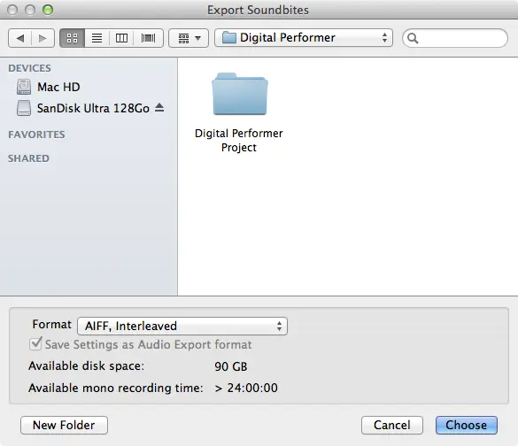 Sélectionnez les tous (y compris celui le bounce de votre mix que nous avons fait plus tôt), faites un clic droit et choisissez « Export selected soundbites ». Le forme utilisé sera « AIFF, Interleaved »