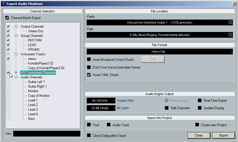 Cubase permet lui aussi d’exporter toutes les pistes d’une session séparément. Moyennant que vous ayez la version complète. Si c’est votre cas, placez vos locators gauche et droit de manière à englober la totalité du morceau en pensant à laisser quelques mesures de plus à la fin.